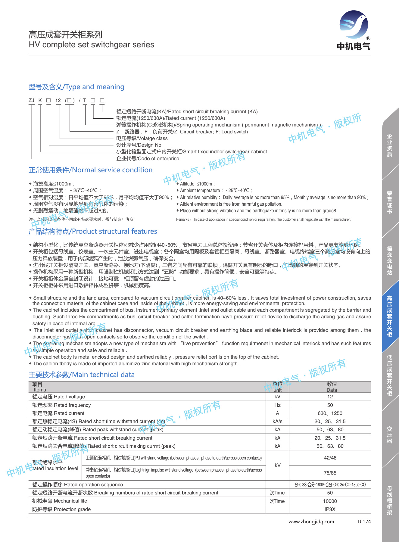 防護(hù)等級,內(nèi)部不采用任何形式的相間和相對地隔板及絕緣氣體
