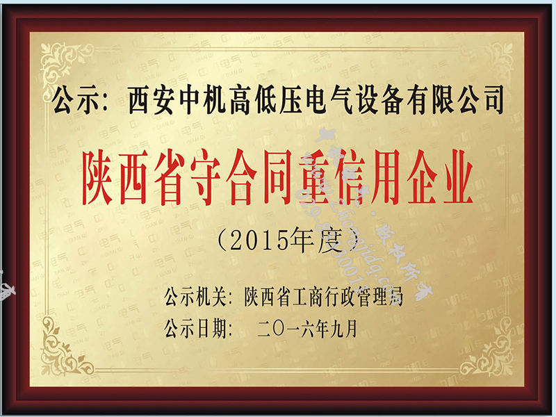 陜西省守合同重信用企業(yè)榮譽證書